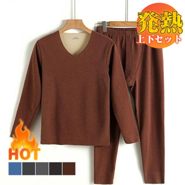 インナー メンズ Vネック インナーセット 発熱インナー 上下セット あったか 長袖 発熱 裏起毛 無地 肌着 ロングパンツ 暖かい 防寒インナー