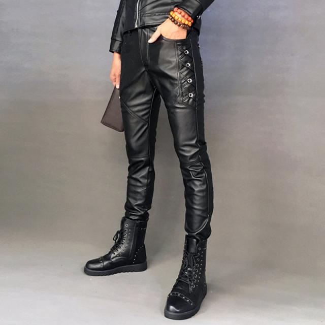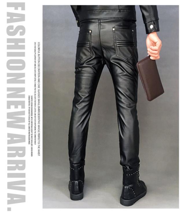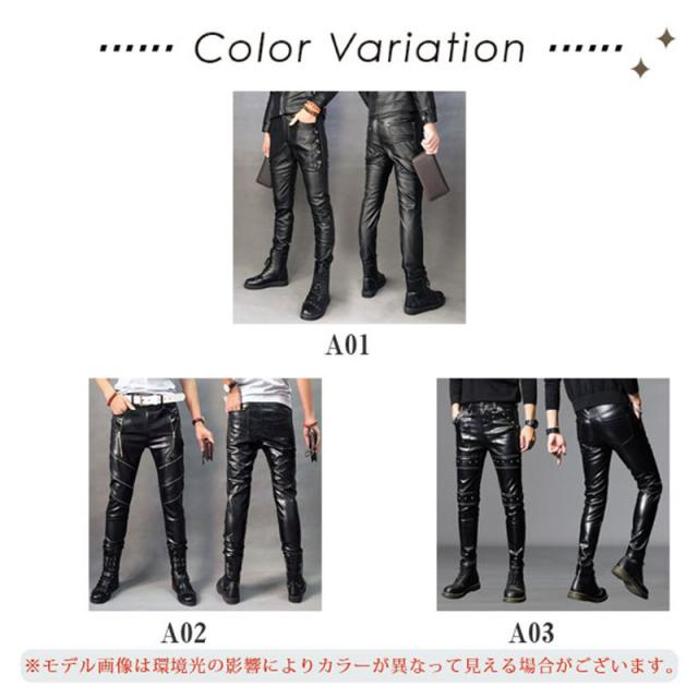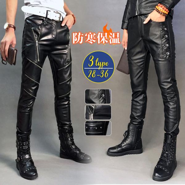 レザーパンツ スキニー メンズ 革パンツ 細身 ボトムス バイク 皮パンツ フェイクレザー 秋冬 防寒 男性用 保温 送料無料 大きいサイズ