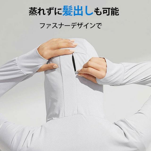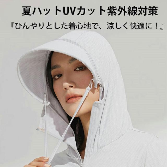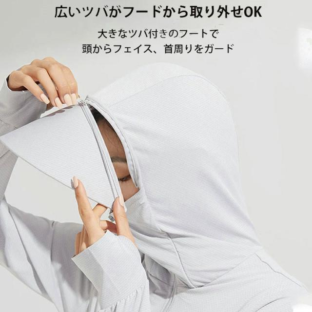 パーカー レディース 長袖 ラッシュガード UVカット アウター メンズ 接触冷感 指穴 つば 取り外し あご紐 調整可能 サンバイザー 3way
