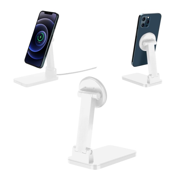 Mywill磁気携帯電話ホルダー、折りたたみ式、調節可能なデスク用頑丈な電話スタンド、強力なマグネット、Magsafe 充電器、iPhone 12 Pro Max、およびすべての電話と互換性あり(白)