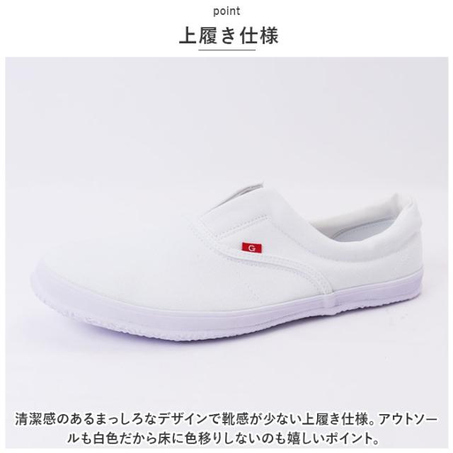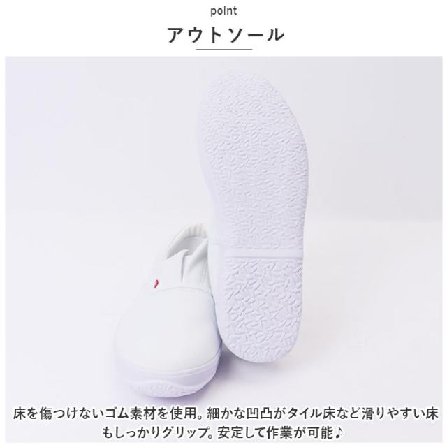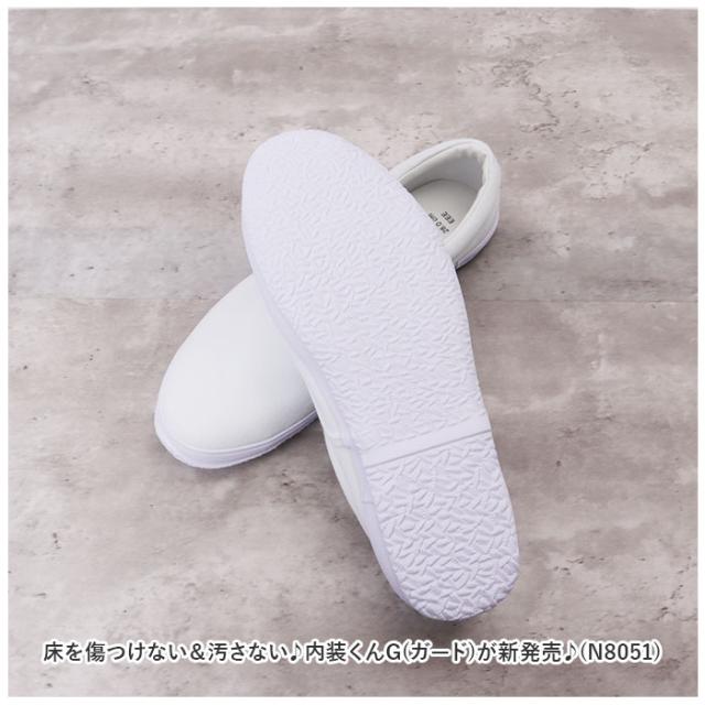 | 商品説明 | ・床を傷つけない&汚さない♪内装くんG(ガード)が新発売♪(N8051) 【上履き仕様】 ・清潔感のあるまっしろなデザインで靴感が少ない上履き仕様。 ・アウトソールも白色だから床に色移りしないのも嬉しいポイント。 【先芯入り】 ・つま先部分にはプラスチック製の先芯入りで、安全に作業が可能!上に道具を落としても安心♪(※安全靴ではございません。) 【脱ぎ履きラクラク】 ・靴ひもがないスリッポンタイプ。フロントのゴムがグッと広がり脱ぎ履きがスムーズに可能。 【こだわりある履き口】 ・履き口にクッションを内蔵し、柔らかい肌あたりで靴擦れしにくい!合皮素材の滑り止め付き。 【アウトソール】 ・床を傷つけないゴム素材を使用。細かな凹凸がタイル床など滑りやすい床もしっかりグリップ。安定して作業が可能♪ |