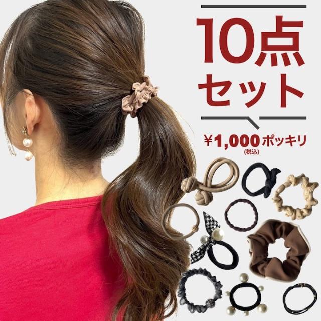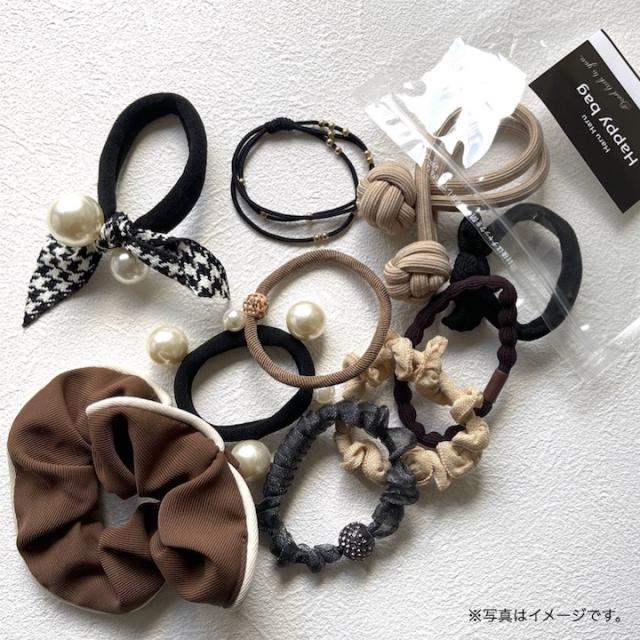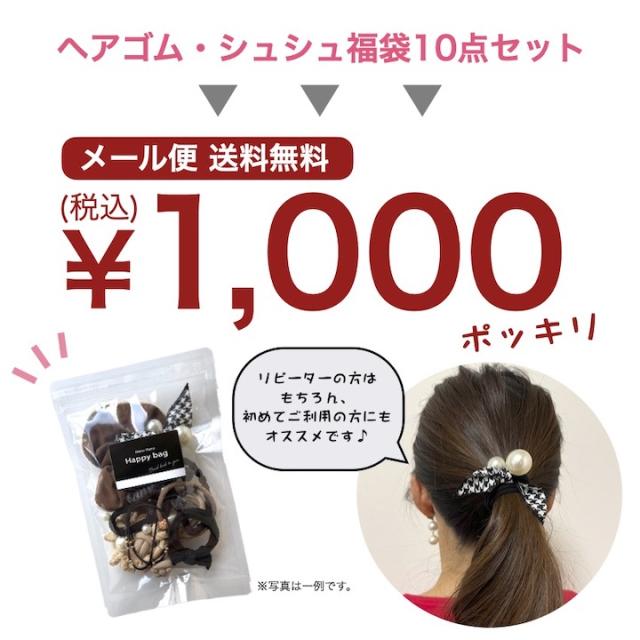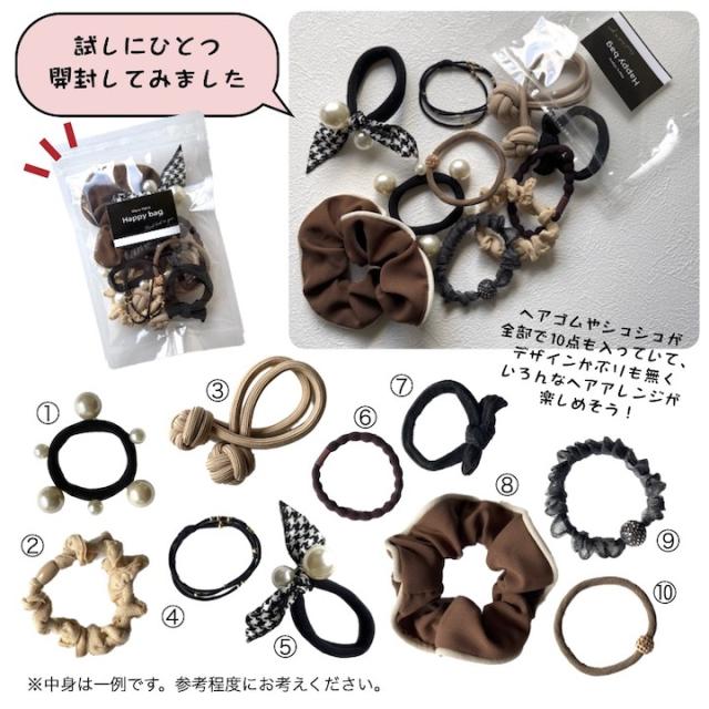 1000円ポッキリ 福袋 10個セット ヘアゴム シュシュ 福袋 ヘアアクセサリー パール ヘアゴム 大人 子供 キッズ レディース 髪留め おしゃれ セット 黒 ブラウン ハッピーバッグ happy bag 2025