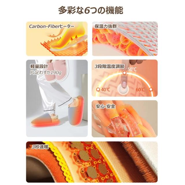 電気スリッパ 電熱スリッパ 暖かい 冬 足温器 充電式 コードレス 3秒即暖 3段階温度調節 足元 あったか ムートンスリッパ 室内 寒さ対策 洗濯可能 PSE認証済み