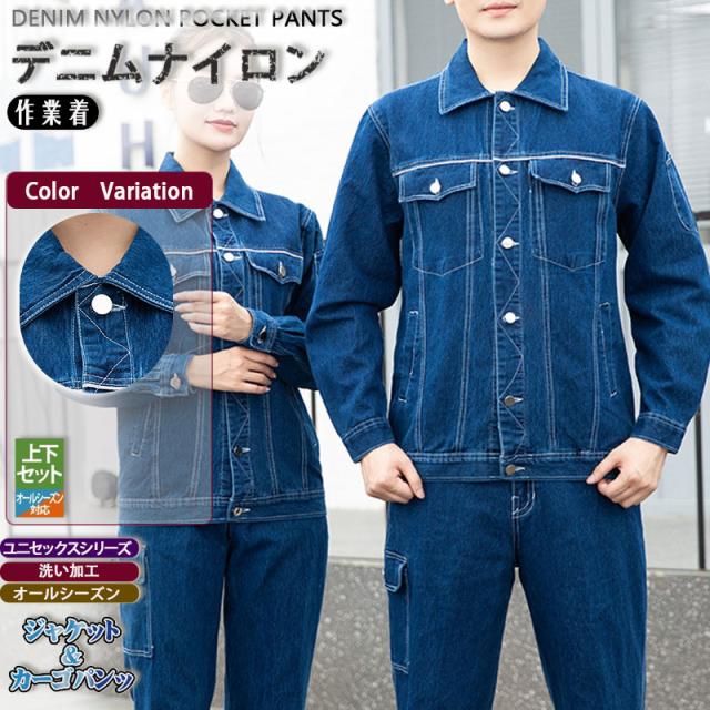 数量限定 作業着 上下セット デニム ジャケット カーゴパンツセット 作業服 上下組 プロノ ワーク ジャンパー コーデュラ 耐久性 フィット