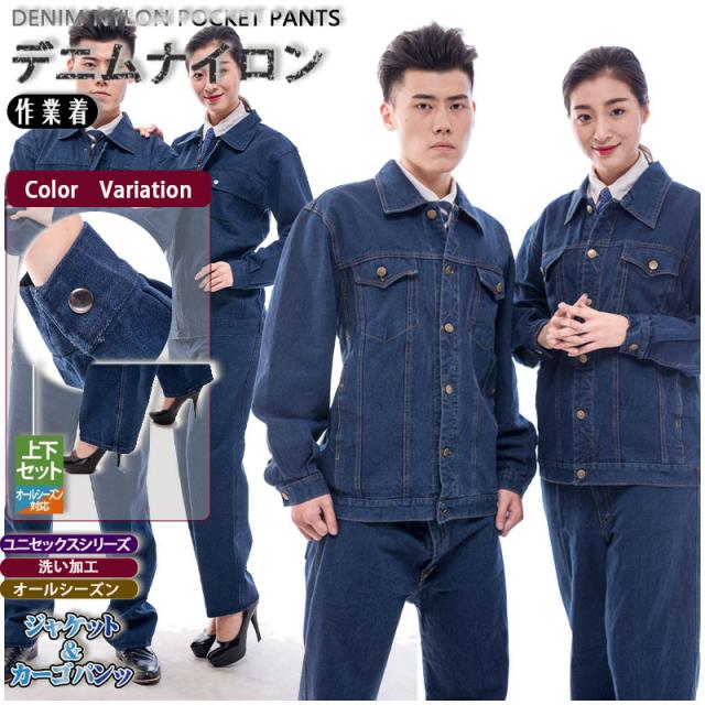 作業服 上下セット デニムジャケット デニムカーゴパンツ ジャンパー 長袖 作業着 オールシーズン ズボン 秋冬 限定生産 おしゃれ 作業ズボン