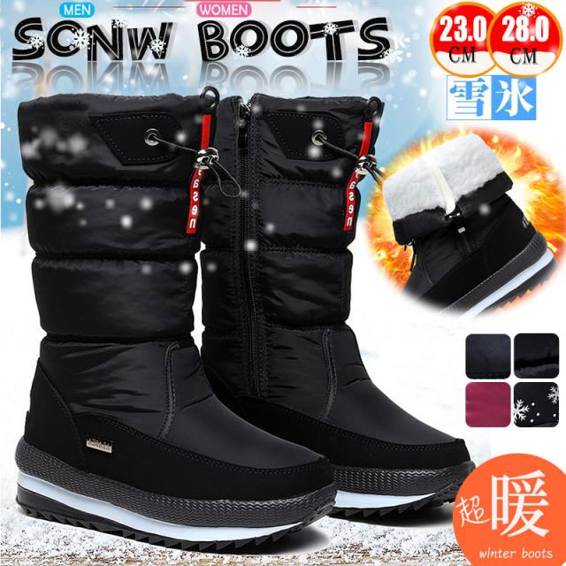 値下げ スノーブーツ メンズ レディース 裏起毛 ダウン風 ムートンブーツ 完全防水 軽量 裏ボア 暖かい ドローコード スノーシューズ 防寒 ボア