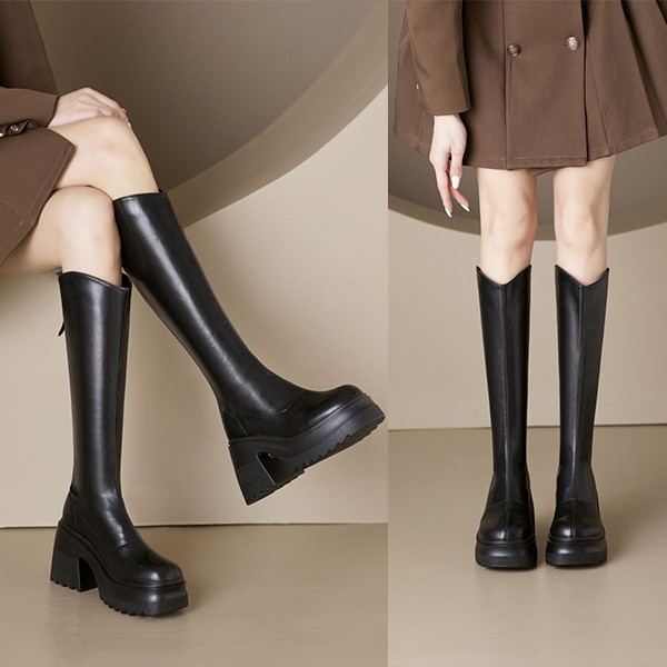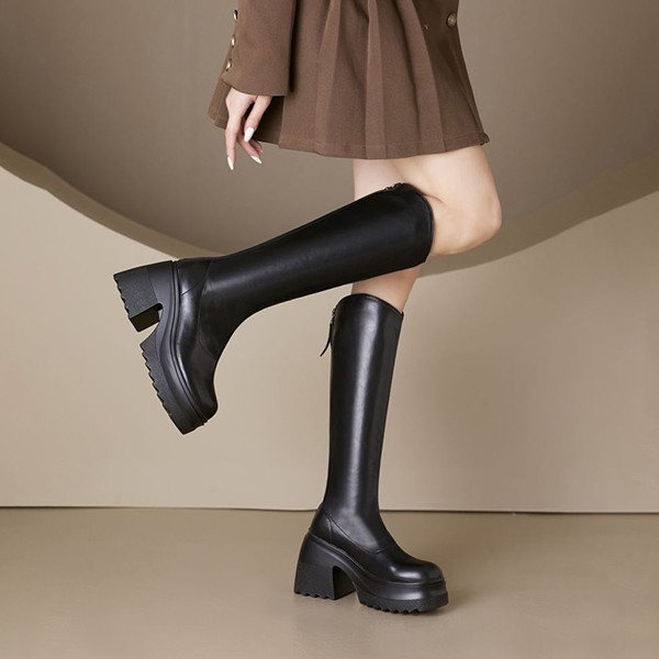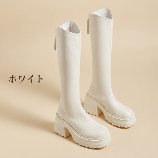 ロングブーツ ブーツ レディース PU 着痩せ効果 太いヒール 厚底 美脚 防寒 秋 冬 可愛い フェミニン ガーリー きれいめ 通勤 ブラック アイボリー ブラウン xz003cycyzr