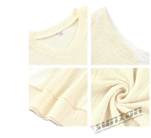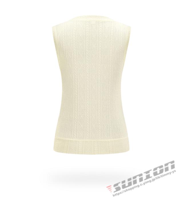 ◎ワンポイントでシンプルな無地のVネックケーブルニットベスト