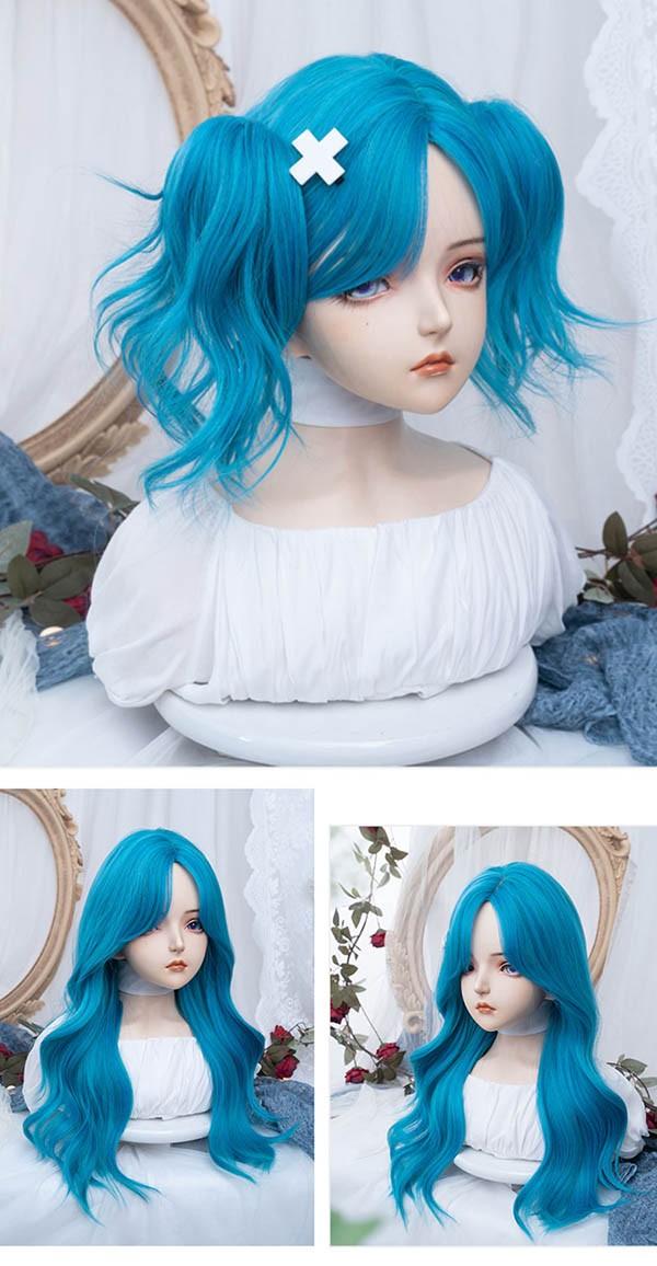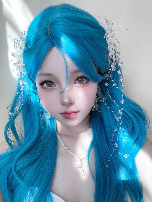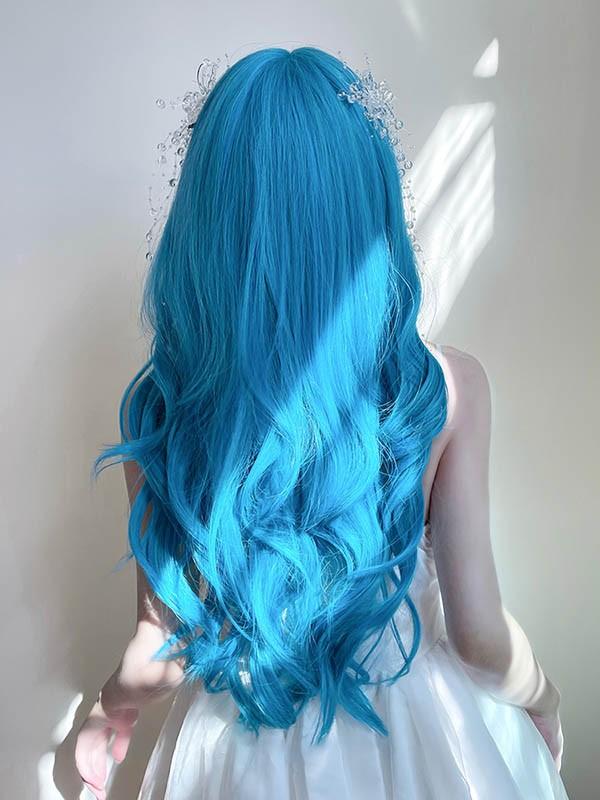 ウィッグ レディース フルウィッグ ロング 巻き髪 ブルー ぱっつん前髪 前髪あり 可愛い かわいい 大人用 コスプレ ロリータ ゴスロリ コスチューム 原宿風 仮装 超自然 かつら wig Lolita 小顔 文化祭 イベント 学園祭 ハロウィン 魔女 人魚 dq103n1n1zr