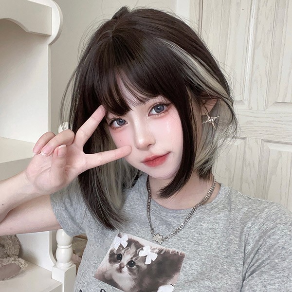 ウィッグ メッシュ レディース フルウィッグ ショート ストレート ぱっつん前髪 前髪あり 可愛い かわいい 大人用 コスプレ ロリータ ゴスロリ コスチューム 原宿風 仮装 超自然 かつら wig Lolita 小顔 文化祭 イベント