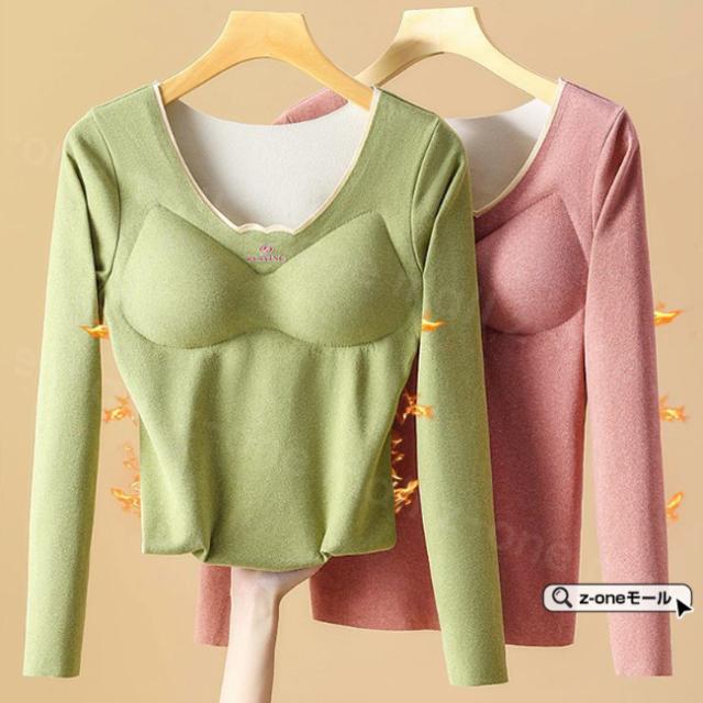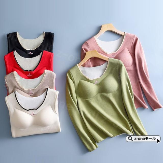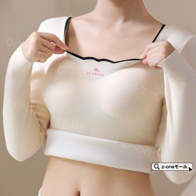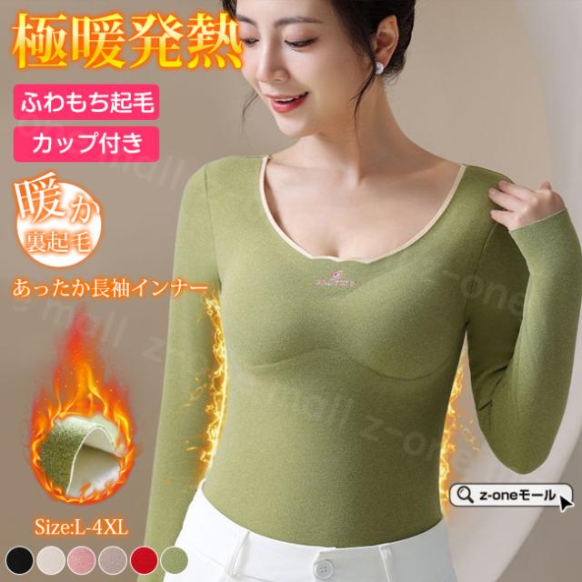 起毛インナー カップ付き 長袖 両面起毛 春新作 送料無料 あったか 暖かい 集中保温 防寒対策インナー シンクロブラトップ 締付け感なし 極暖 柔軟かい ブラジャー 細魅せ 高弾性 裏起毛 ホワイトデー 卒業式