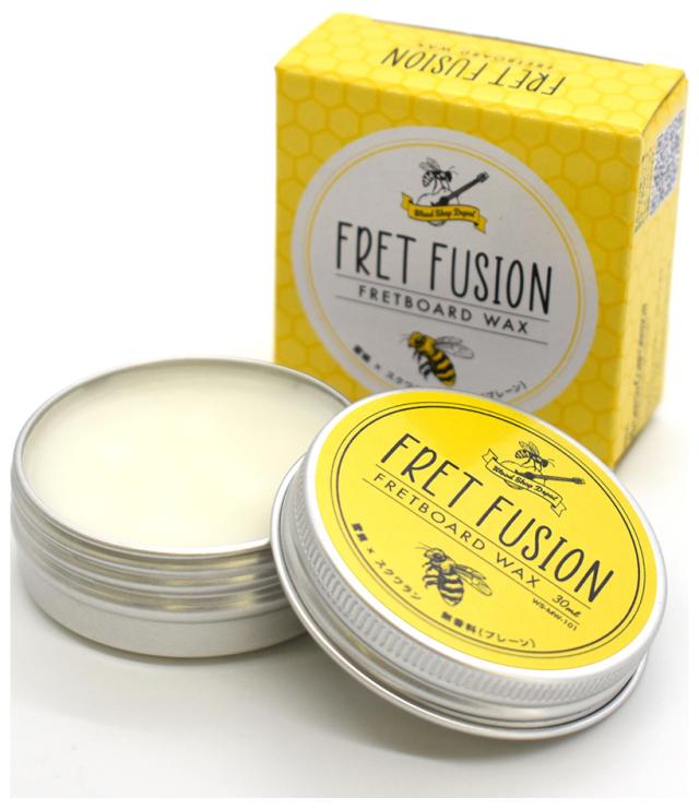 FRET FUSION FRETBOARD WAX はミツバチの巣から採取した天然の未ざらし蜜蝋に、うるおい成分として人の皮脂にも含まれる、浸透性・湿潤性に優れたスクワランを配合した天然の蜜蝋ワックス。