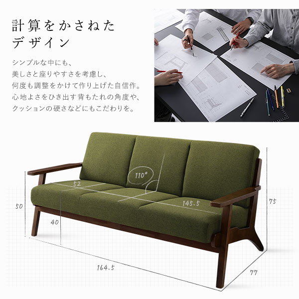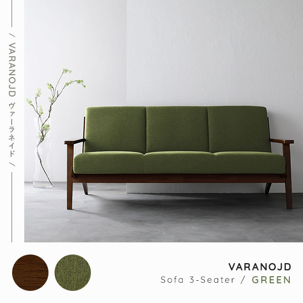 ソファ 3人掛け グリーン 肘付き 天然木 木肘 木枠 北欧風 ソファー デザイナーズ 組立品 インテリア家具 【北海道・沖縄・離島配送不可】