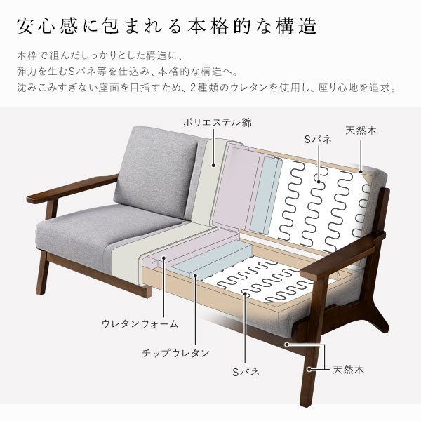 ウレタンフォーム、ポリエステル、Sバネ、天然木、合板