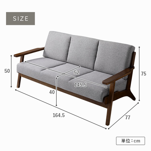 3人掛け:幅164.5cm×奥行77cm×高さ75cm(座面の高さ:40cm、背もたれの高さ:40cm)