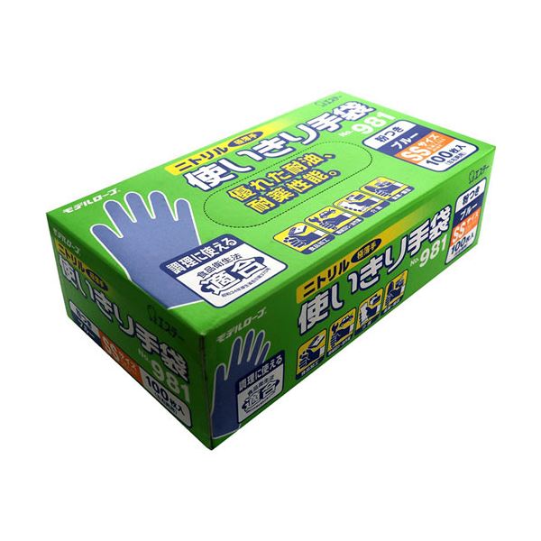 エステー モデルローブ No.981ニトリル使いきり手袋(粉付) SS ブルー 1箱(100枚) 【北海道・沖縄・離島配送不可】