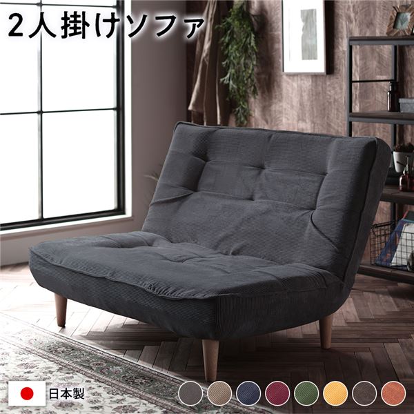 ハイバック ソファー 〔 2人掛け コーデュロイ生地 チャコールグレー 〕 脚部:ナチュラル リクライニング 日本製 【北海道・沖縄・離島配送不可】