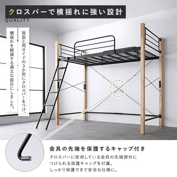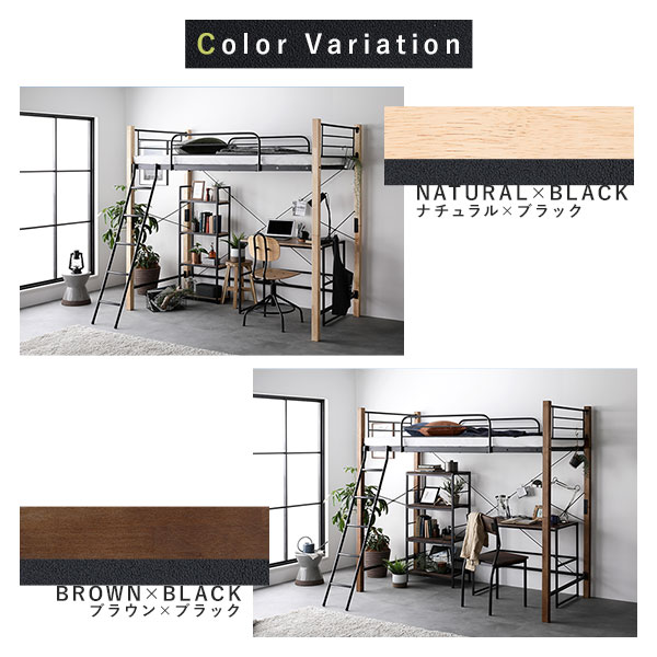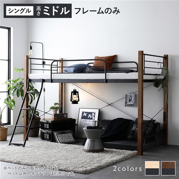 ロフトベッド 〔 シングル ミドルタイプ ベッドフレームのみ ブラウン×ブラック 〕 スチール 頑丈 【北海道・沖縄・離島配送不可】