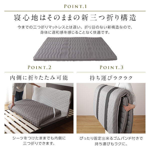 ■ミドルタイプ ナチュラル×ブラック 薄型3つ折りポケットコイルマットレス付き