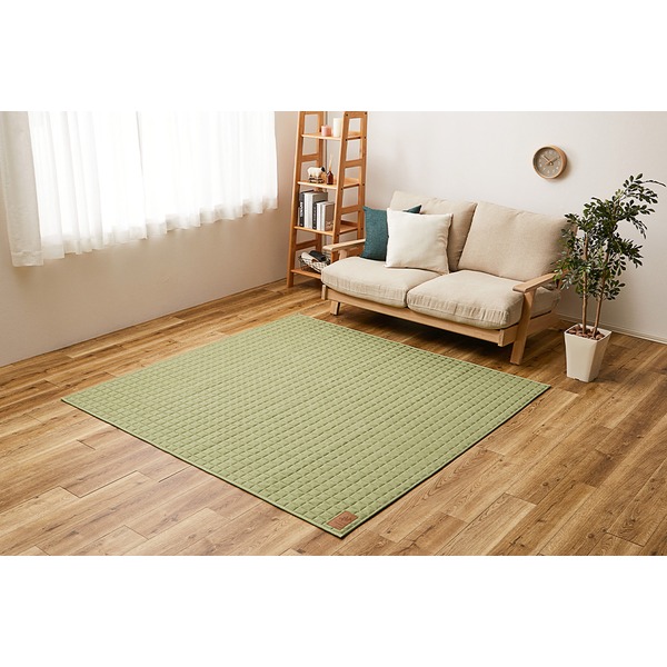 【サイズ(cm)】約190×190 【カラー】グリーン 【組成】表面:ポリエステル75%・綿25% 中材:ポリエステル100% 硬綿200g/平方メートル 裏面:不織布 130g/平方メートル すべりどめ付き タグ:PUレザー 【洗濯】ウォッシャブル 【厚み(mm)】約 5.0 【滑り止め】 あり 【ホットカーペット/床暖房】対応 【原産国】中国 【ご注意事項】 ・本商品は、北海道・沖縄・離島への配送はいたしかねます。あらかじめご了承ください。