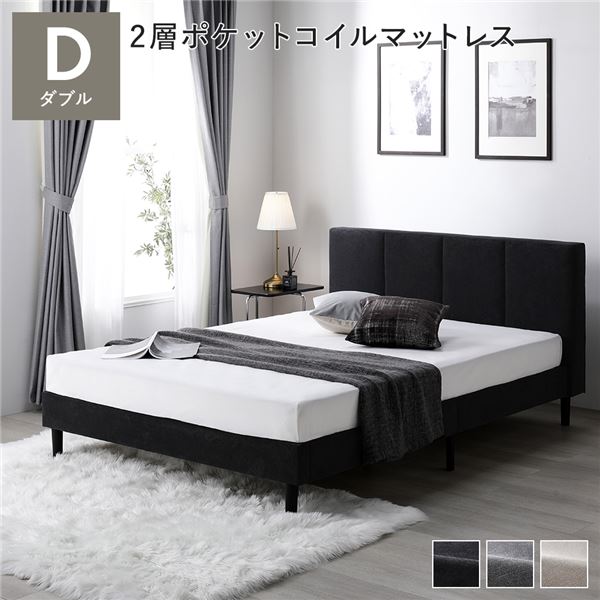 ベッド ダブル 2層ポケットコイルマットレス付き ダークグレー 布張り 脚付き すのこベッド ファブリックベッド 【北海道・沖縄・離島配送不可】