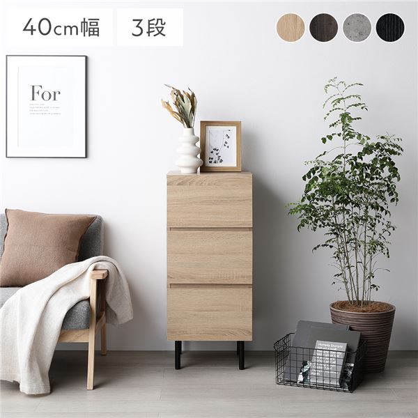 チェスト ナチュラル スリム3段 幅約40cm 収納 スチール脚 異素材MIX おしゃれ 組立品 【北海道・沖縄・離島配送不可】