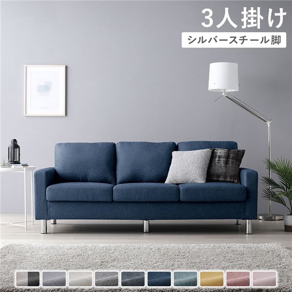 ソファ 3人掛け 〔 カバー:ネイビー 脚:スチール 〕 肘付き 洗える カバー ローソファー 組立品 【北海道・沖縄・離島配送不可】