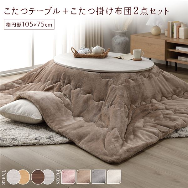 こたつ セット 2点セット 〔 こたつテーブル :ホワイトウォッシュ/ナチュラル こたつ布団 :ベージュ 〕 楕円形 約105×75cm 【北海道・沖縄・離島配送不可】