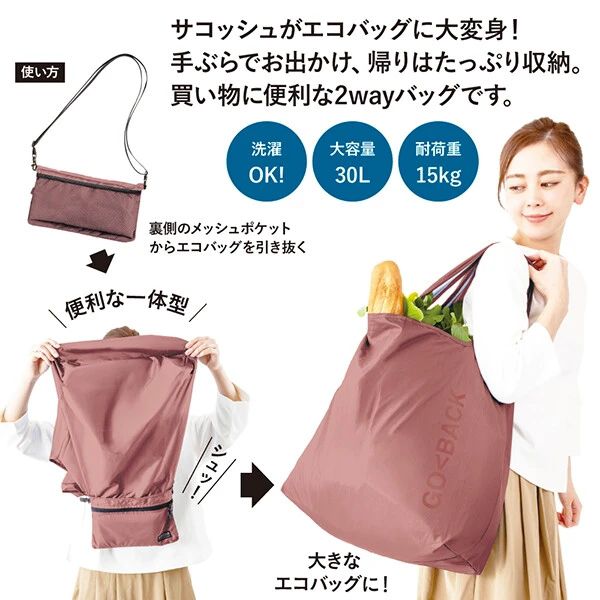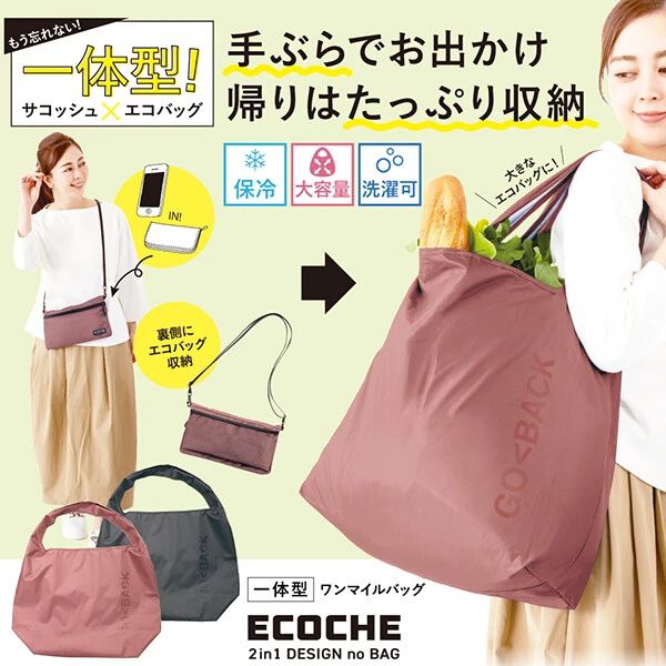 軽くて扱いやすい、エコバッグと一体化したサコッシュ。