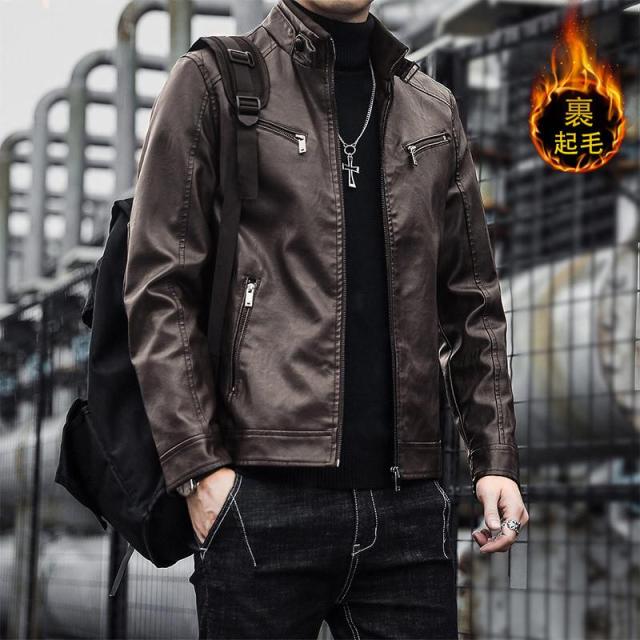 ポイント5倍 ライダースジャケット メンズ 革ジャン 裏起毛 レザージャケット アウター 機能的 立ち襟 カジュアル PU ゆったり 高級感 防風 秋冬 かっこいい 送料込み