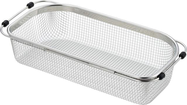 ◆商品名:金伊工業 水切りラック 水切りかご 大 3~4人用 日本製 シェイプライン 18-8スライド式メッシュシンクバスケット 1686114<br>シンクの端に沿った形状なので、シンク内のスペースを無駄なく使える