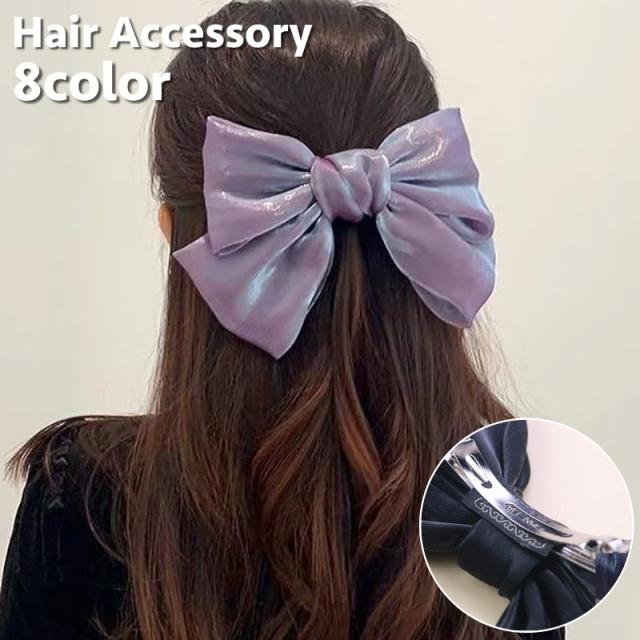 バレッタ レディース 女性 ヘアアクセサリー 髪留め 髪飾り リボン 大きめ サテン調 ビッグ 無地 シンプル 可愛い ガーリー