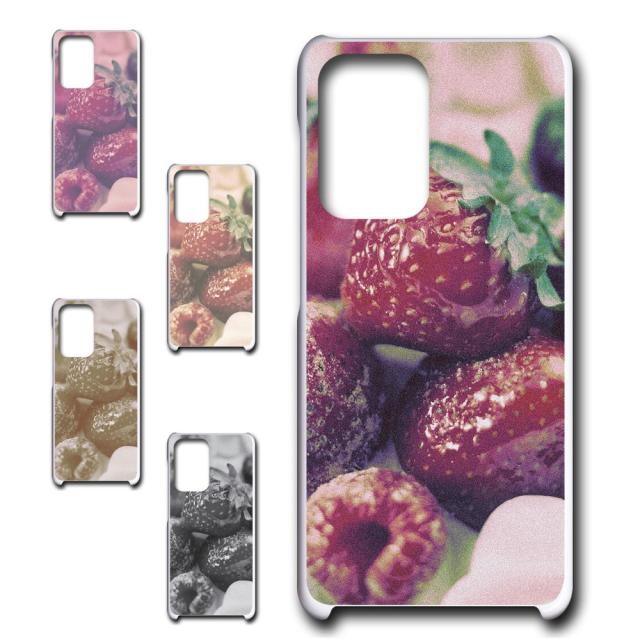 Galaxy A52 5G SC-53B ケース イチゴ スマホケース ベリー モノクロ セピア ストロベリー いちご プリントケース ハードケース 苺 いちご柄 スイーツ柄 かわいい フォト SM-A5260 ギャラクシーa52 ぎゃらくしーa52 sc53b sma5260