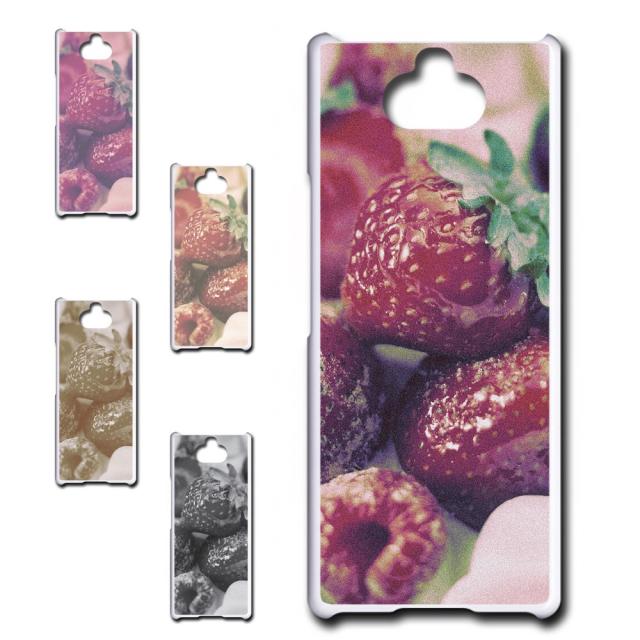 Xperia8 SOV42 ケース イチゴ スマホケース ベリー モノクロ セピア ストロベリー いちご プリントケース ハードケース 苺 いちご柄 スイーツ柄 かわいい フォト エクスペリア8 えくすぺりあ8 エックスペリア8