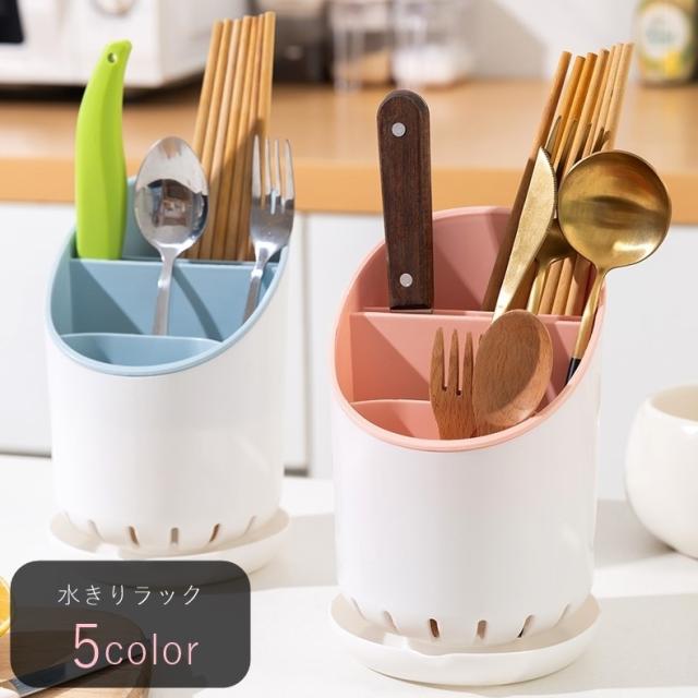 水きりラック 洗いかご 水切りかご 箸立て インテリア雑貨 キッチン雑貨 台所雑貨 仕切り付き 仕切りあり 円筒形 無地 ブルー