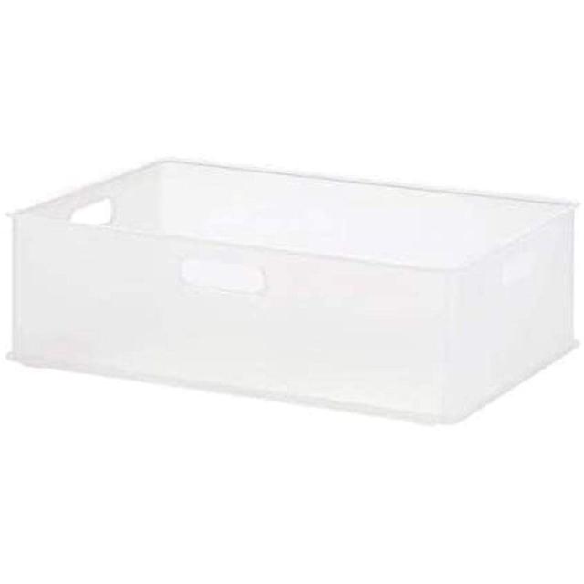 すっきりとしたフォルムで、どんなお部屋にもなじみます。<br>どの方向からも取り出しやすい取っ手つき。<br>フタなしでも積み重ねできます。<br>キャスターをつけて、ワゴンのようにも使用できます。(S・SDサイズを除く)<br>安心の日本製。<br>◆商品名:サンカ インボックス カラーボックスにぴったりフィットする収納ボックス Mサイズ クリア (幅38.9×奥行26.6×高さ12cm) 3方向取っ手<br>カラーボックスや棚収納に便利なインボックス。そのまま積み重ねても使えます。