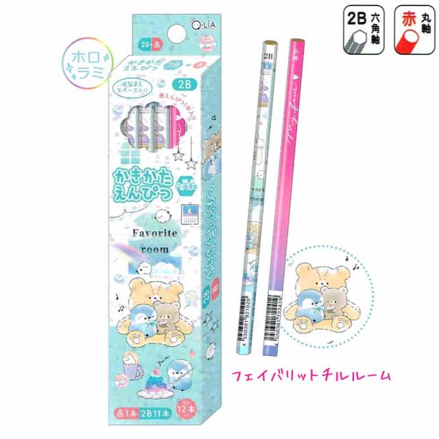 メール便 OK 2B鉛筆 12本セット ダース 女の子 向け フェイバリットチルルーム 丸軸赤1本 六角軸2B11本 クーリア おしゃれ で かわいい 文房具