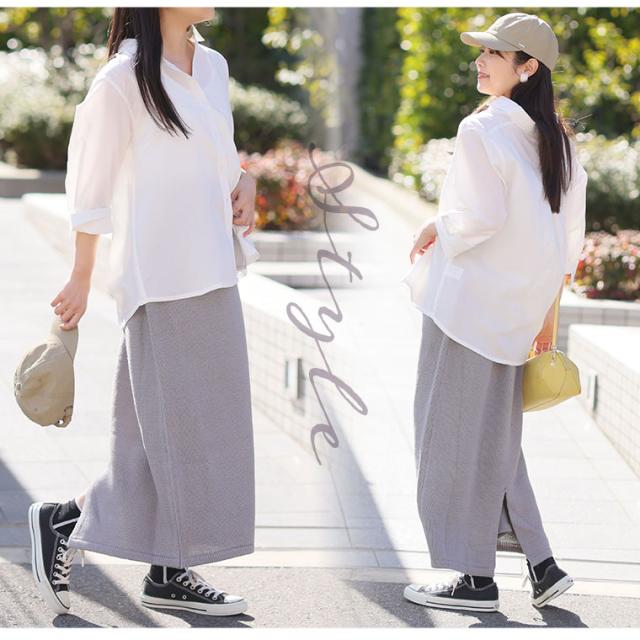 ■着用感:ちょうどいい、■着丈:足首、■バスト:-、■腕回り:-、■袖口:-、■袖丈:-、■首回り:-、■ウエスト:ちょうどいい、■ヒップ:ちょうどいい、■太もも:ちょうどいい ●ストンしたラインでスラリと見えて脚長効果が最高です!