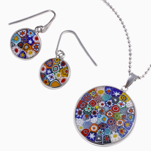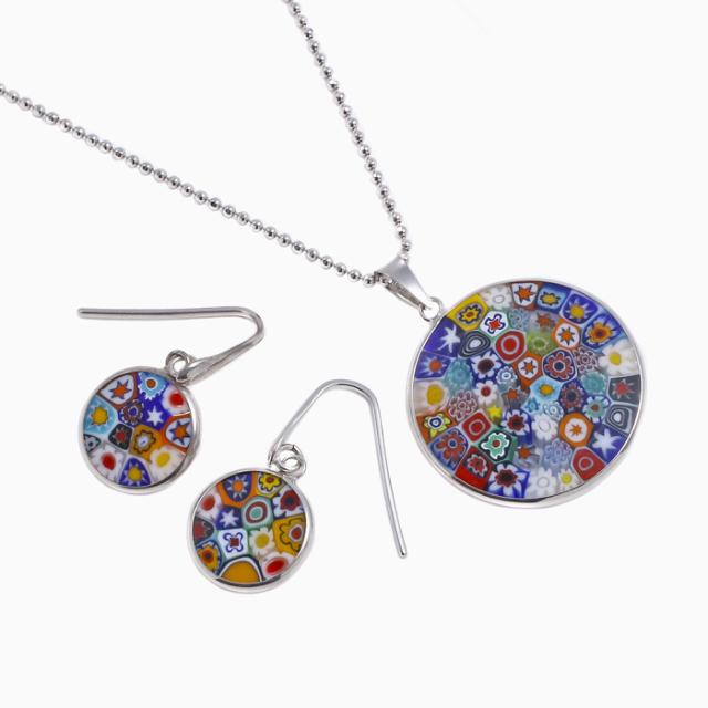 ベネチアンガラスペンダント ベネチアングラス ピアス ミレフィオリ 手作り ハンドメイド レディース シルバー925 SV925 フック式 マルチカラー クリックポスト便対応 お買い得セット