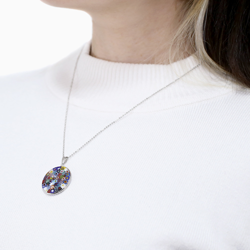 ベネチアンガラス、シルバー925ロジウム仕上げ(留具、枠、チェーン)