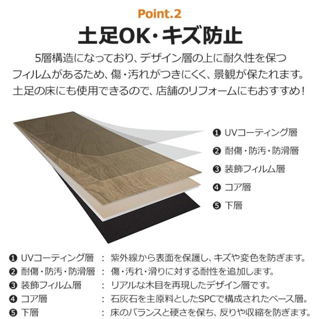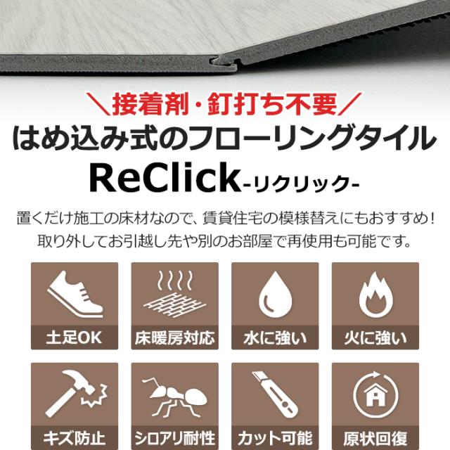 フローリング材 DIY 板 敷くだけ はめ込み式 フローリング フロアタイル 接着剤 釘不要 SPC リクリック (R) 約18.3×123cm 10枚入り 厚さ5mm 床材 床タイル ウッド調 木目 耐火 耐水 はっ水 キズ防止 防汚 土足OK 床暖房対応 防滑 耐衝撃性 シロアリ耐性 引っ越し 新生活