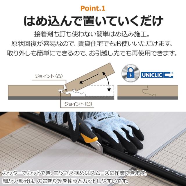 SPCフローリングは、はめ込んで置くだけの施工で簡単に床のリフォームができるDIY向け床材です。