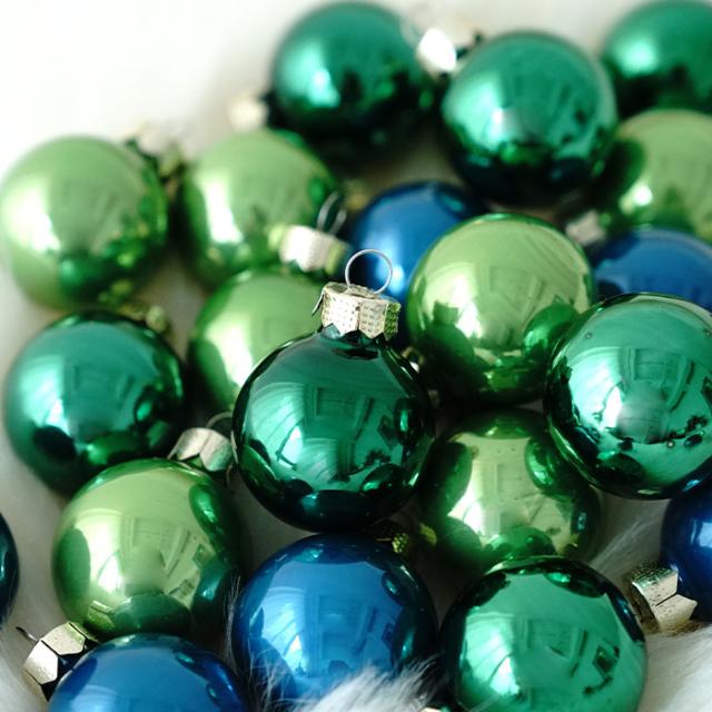 グリーンとブルーを基調とした小ぶりのボールオーナメントセットです。
