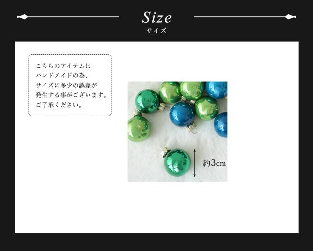 ★グリーンとブルーを基調とした小ぶりのボールオーナメントセットです。 クリスマスツリーを鮮やかに彩るボールオーナメントは毎年人気の定番オーナメント。同系色を飾ることで、ツリー全体に統一感と奥行きが出ておしゃれな印象に仕上がります。 寒色系のオーナメントはクリスマスツリーに引き締まった印象を与えてくれます。 枝ツリーや小さめのポットツリー、卓上ツリーなどに飾るオーナメントをお探しの方や、ツリーにあと少しボリュームを足したい方におすすめのオーナメントです。 24個入り、小さめサイズの3cmボールです。 |