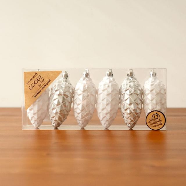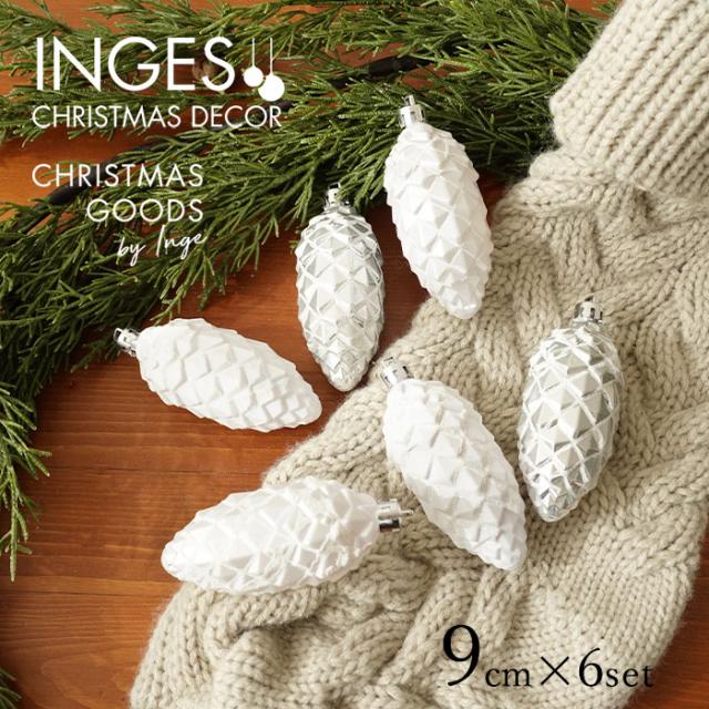クリスマスツリー 飾り オーナメント ドイツ INGE-GLAS GOODS レトロ ホワイトパインコーンセット 10cm 6個入[81018G220]