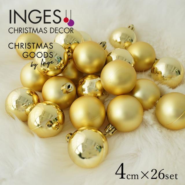 クリスマスツリー 飾り オーナメントボールセット ドイツ INGE-GLAS GOODS レトロ ゴールド デコレーションボール 4cm 26個入[81223G001]