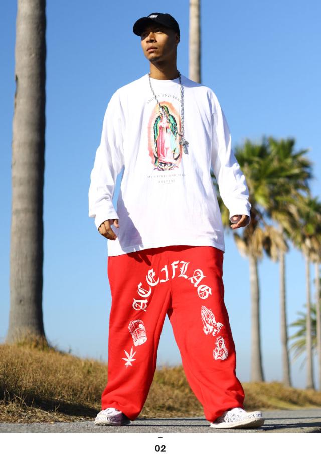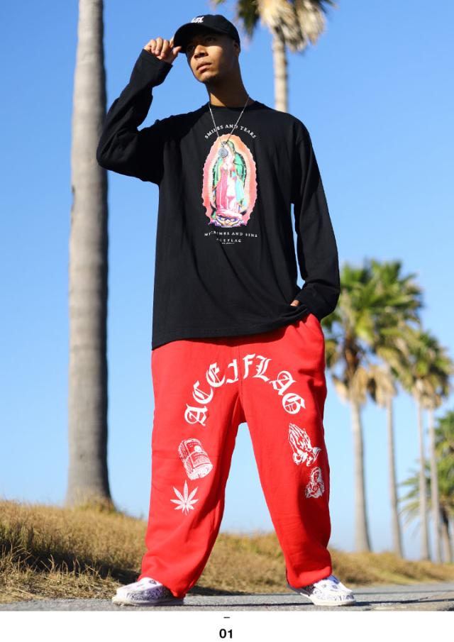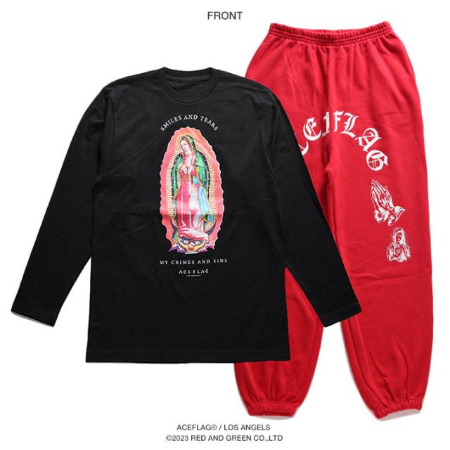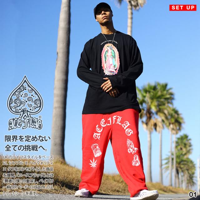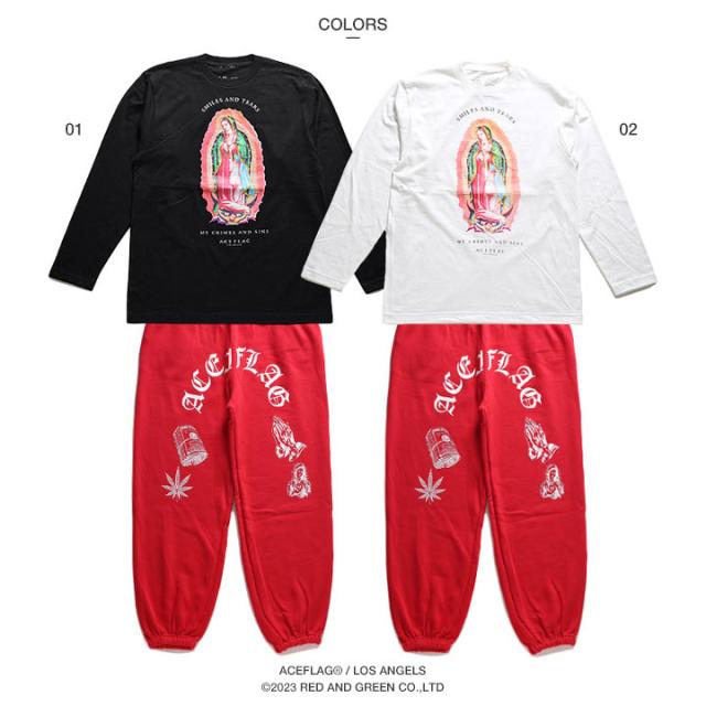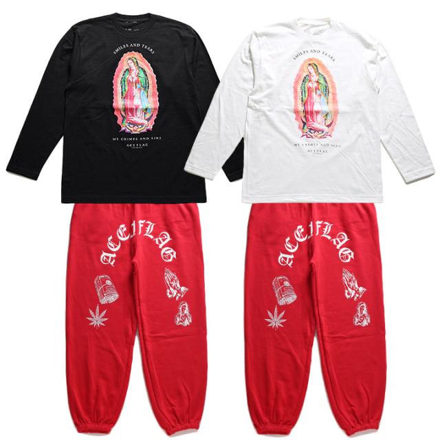 ACE FLAG 上下セット 長袖 メンズ 黒/白 大きいサイズ エースフラッグ セットアップ ロンT 上下 聖母 マリア 聖母マリア ローライダー チカーノ 大麻 マリファナ ヘンプ b系 ヒップホップ ファッション ストリート系 ハイ 新作 AF-SE-LT-100