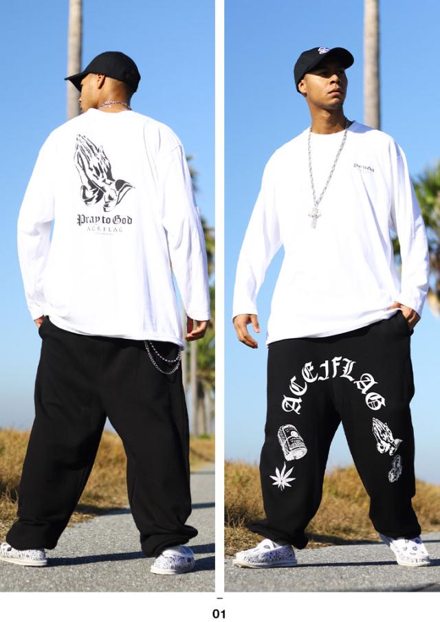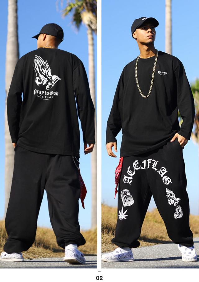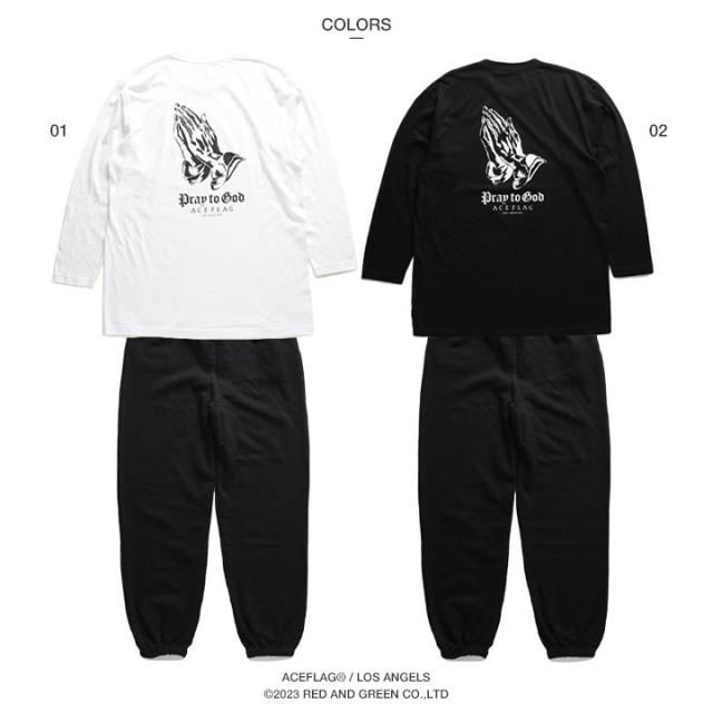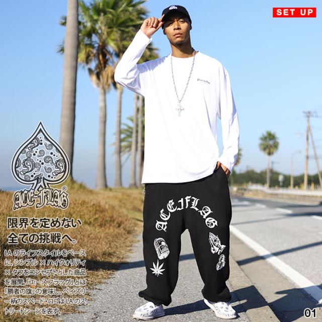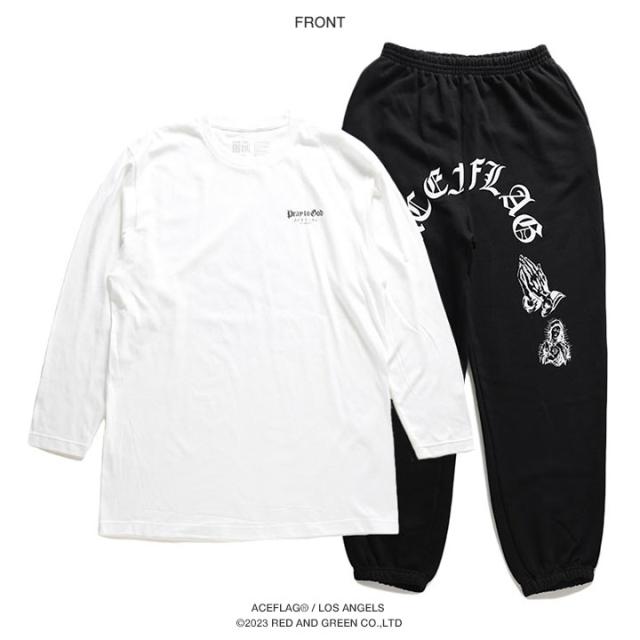 ACE FLAG 上下セット 長袖 メンズ 白/黒 大きいサイズ エースフラッグ セットアップ ロンT 上下 聖母 マリア 聖母マリア プレイングハンズ ローライダー チカーノ 祈る手 b系 ヒップホップ ファッション ストリート系 ハイ 新作 AF-SE-LT-098