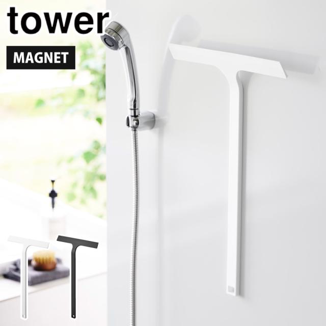 タワー マグネット水切りワイパー ロング 山崎実業 ホワイト 2005 ブラック 2006 yamazaki tower【 スクイージー ハンディーワイパー 風呂 バス 浴室 ミラー 水切り 壁面 磁石 掃除用品 】