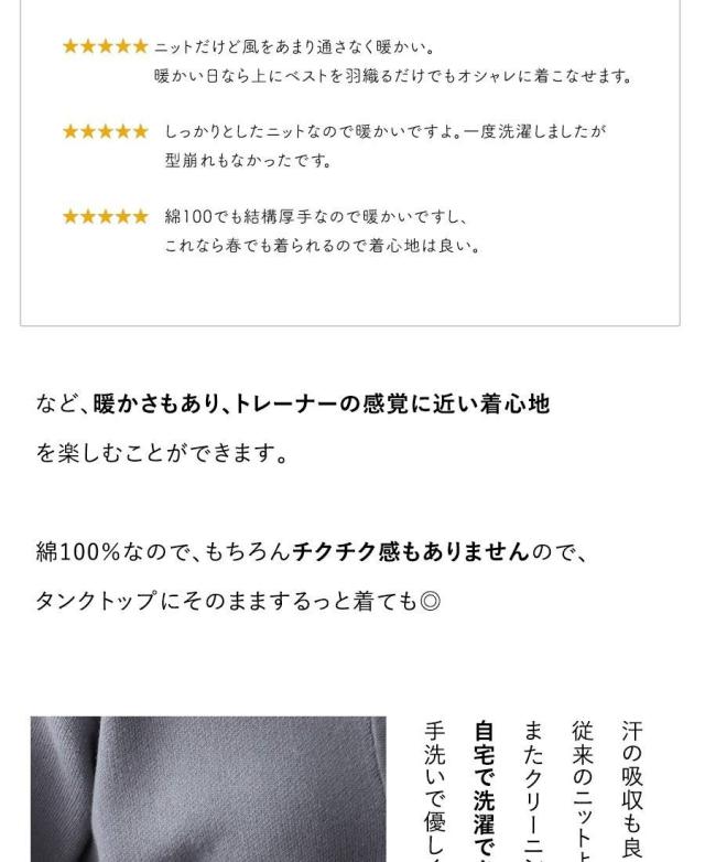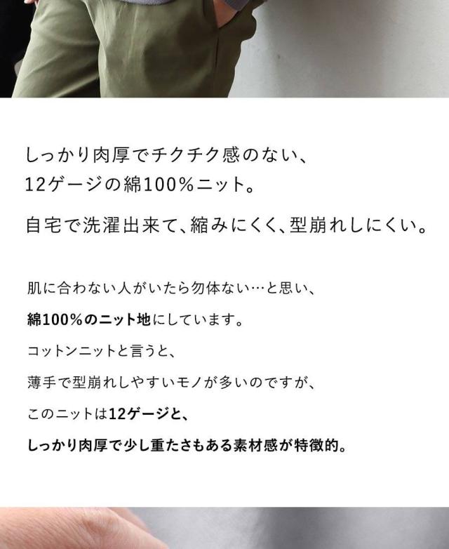 ・しっかり肉厚でチクチク感のない、12ゲージの綿100%ニット。